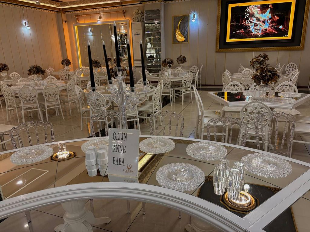Olanaklar : Yemek servisi, Menü tadımı, Menüde değişiklik, Organizasyon sorumlusu, Işık, ses ve sahne hizmeti, Fotoğrafçı getirme, Catering firması getirme, Dans Şov, Müzisyen Getirme, Canlı Müzik, DJ, Karaoke.