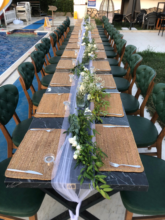 Olanaklar : Yemek servisi, Alkol servisi, Menü tadımı, Menüde değişiklik, Organizasyon sorumlusu, Işık, ses ve sahne hizmeti, Fotoğrafçı getirme, Dans Şov, Müzisyen Getirme, Canlı Müzik, DJ.