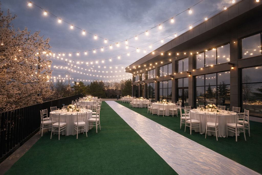Olanaklar : Yemek servisi, Alkollü içecek servisi, Menü tadımı, Organizasyon sorumlusu, Işık, ses ve sahne hizmeti, Dışarıdan organizasyon firması getirme, Dışarıdan müzisyen getirme, Canlı Müzik, DJ.