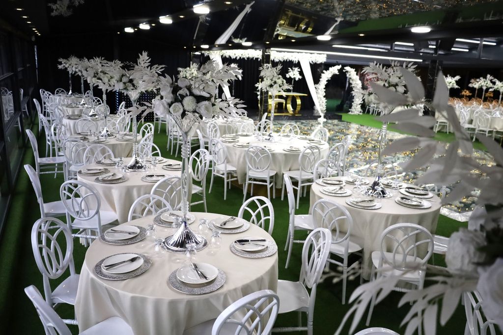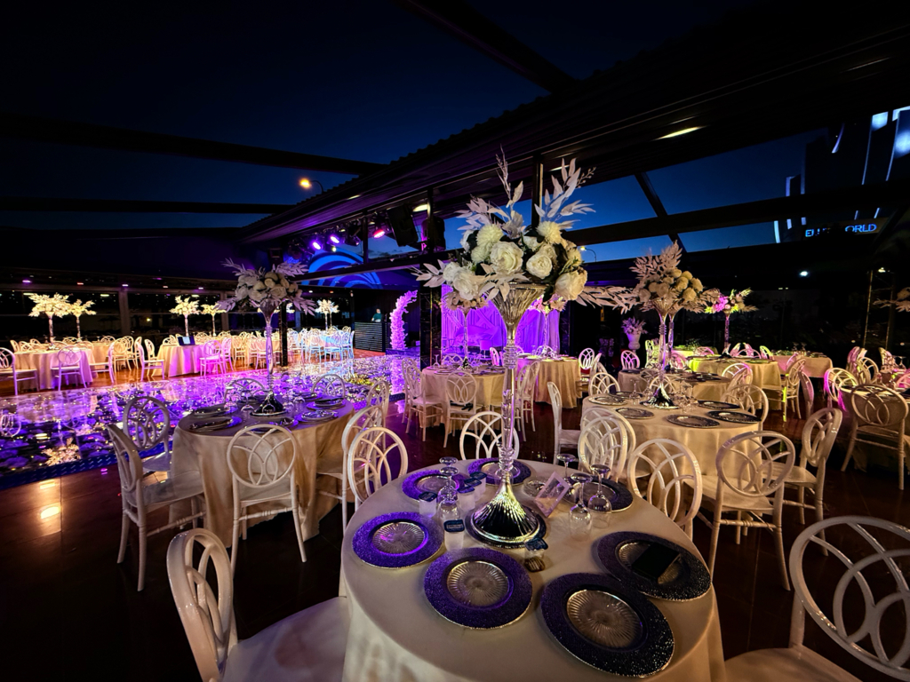 Olanaklar : Yemek servisi, Menüde değişiklik, Organizasyon sorumlusu, Işık, ses ve sahne hizmeti, Dans Şov, Canlı Müzik, DJ.