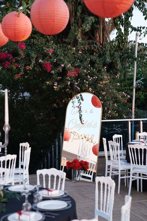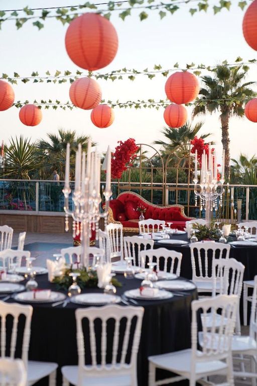 Olanaklar : Yemek servisi, Alkol servisi, Menü tadımı, Menüde değişiklik, Organizasyon sorumlusu, Işık, ses ve sahne hizmeti, Fotoğrafçı getirme, Organizasyon firması getirme, Dans Şov, Müzisyen Getirme, Canlı Müzik, DJ.
